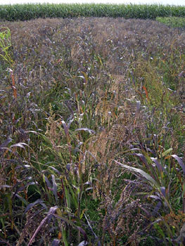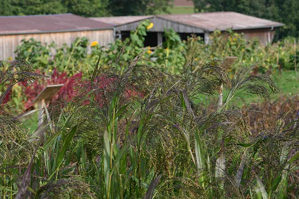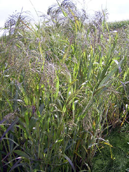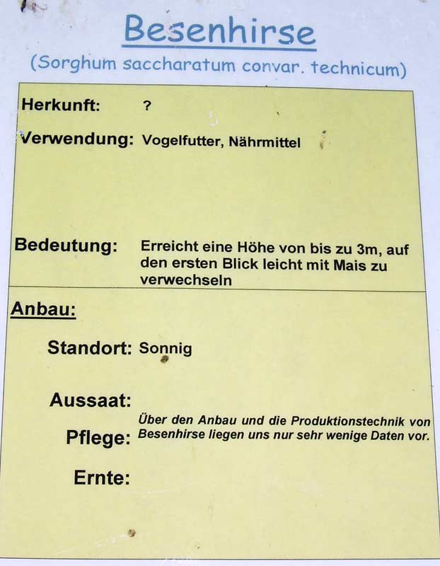 - Besenhirse, auch eine Sorghumart, erreicht eine Höhe von bis zu 3m und ist auf den 1. Blick