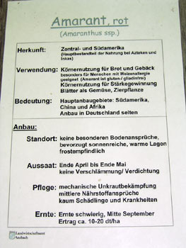 - Amaranth, die Körner dienen zur Stärkegewinnung und für Menschen mit Weizenallergie zur