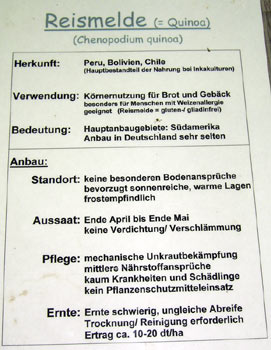 - Quinoa (Reismelde), Körnernutzung wieder für Brot und Gebäck für Weizenallergiker: